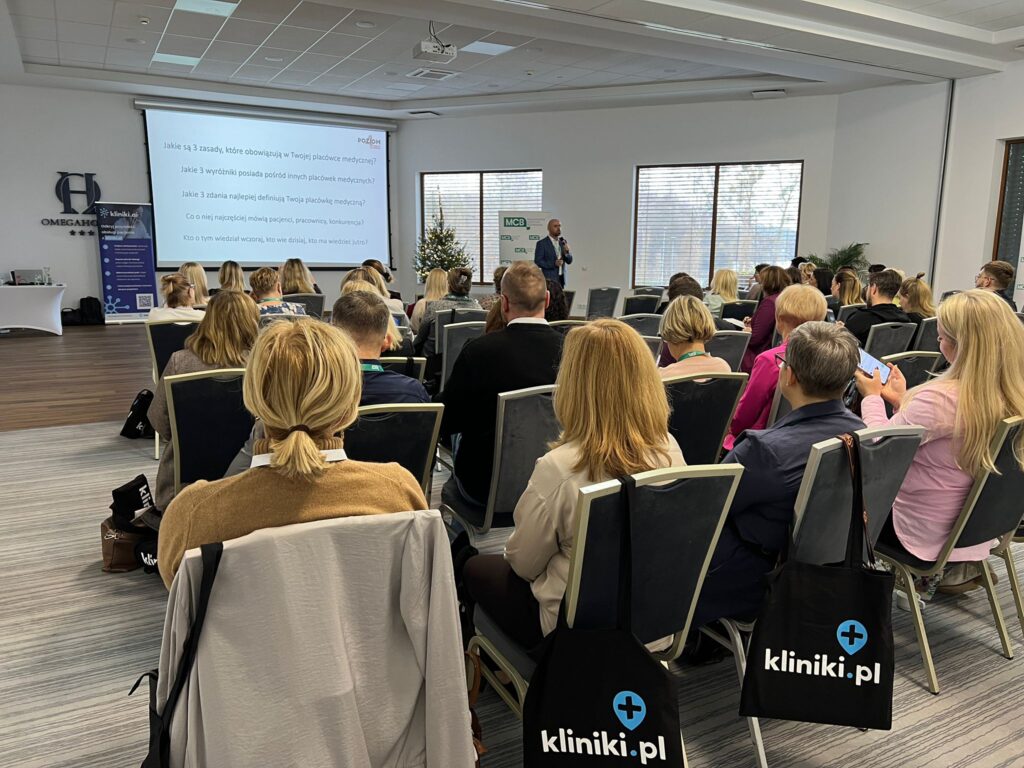 11 grudnia w Hotelu Omega w Olsztynie odbyło się Forum Menedżerów Opieki Zdrowotnej, w którym uczestniczyło około 100 przedstawicieli podmiotów medycznych z regionu. Spotkanie rozpoczęło się wykładem Łukasza Laskowskiego „Zacznij od wartości – zbuduj skuteczną strategię Twojej placówki medycznej i nawigację dla Twoich pracowników”. Następnie przedstawiciel głównego partnera, firmy Kliniki.pl, omówił temat „Dlaczego w placówkach medycznych nikt nie myśli o kasie?”. Kolejnym prelegentem był dr n. prawn. Maciej Gibiński, który przedstawił najważniejsze aspekty prawidłowego zarządzania placówką medyczną. Drugi partner główny, SoftBlue, zaprezentował innowacyjne rozwiązanie AI w prelekcji dotyczącej Wirtualnego Inteligentnego Asystenta Medycznego. Sesję otwierającą zwieńczył networking, podczas którego uczestnicy mogli wymieniać się doświadczeniami z codziennej pracy.